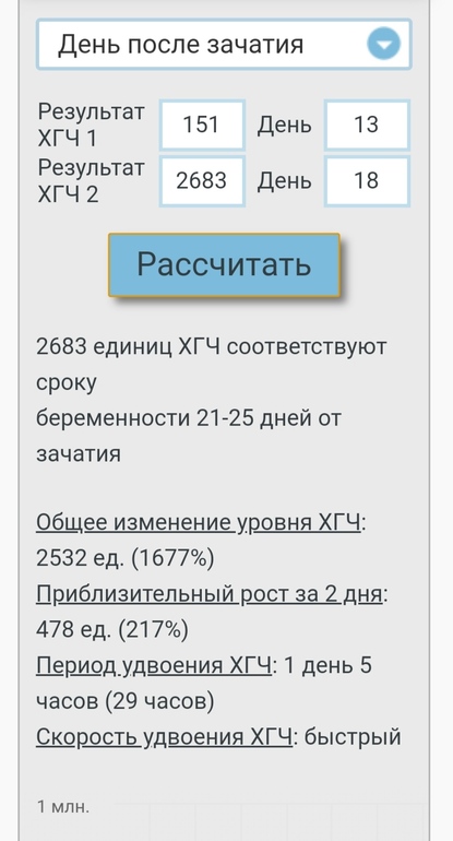 калькулятор хгч пишет быстрый рост, примерное удвоение за 1 день 8 часов.