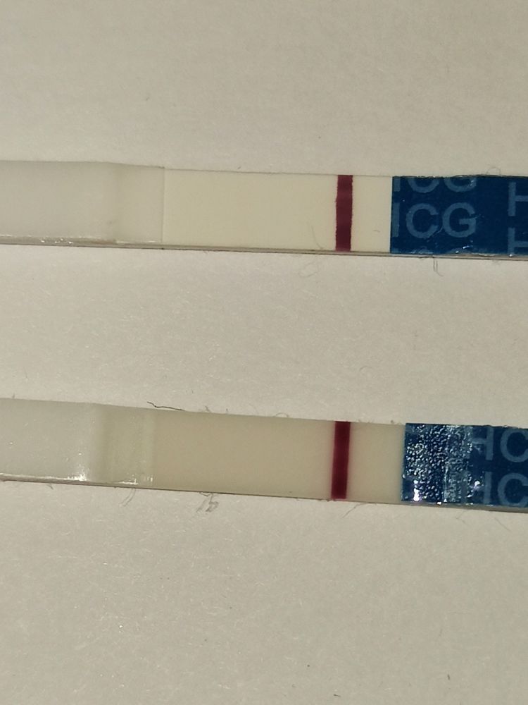 На верхнем призрака вижу. Возможно концентрация ХГЧ в моче была разная. Удачи, ярчайте.