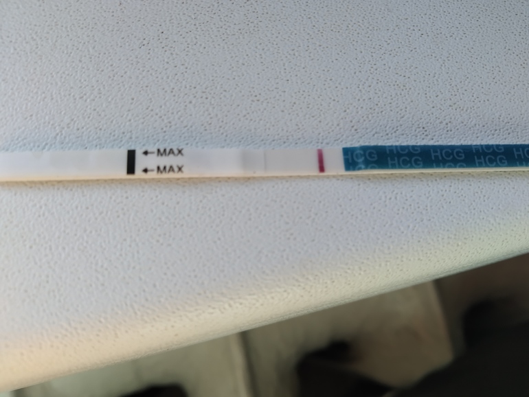 Надя, полоска серая? Если да , то реагент , если розовая, то скорее всего слабоположительный . Я свои тесты всегда фонариком просвечивала 😄