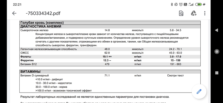 Спасибо! Значит правильно поступила. Решила "отдохнуть" от фолата. А для повышения ферритина принимаю солгаровское хелатное железо + витамин С