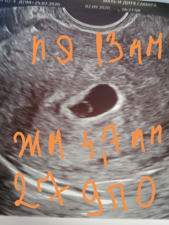 желточный мешочек 4.7 мм. И это за 2 дня прогресс. Пя 13 мм! Эмбрион тоже формируется, там полосочка такая 2 мм, но писать не стала пока. Так что 9 сентября к ре приеду уже сердцебиением! Вы не представляете как меня сегодня отпустило. Я счастлива. Девочки. Вы представляете? Есть желточный мешочек 4.7 мм! А не большой мешочек то? По таблицам это 7 недель. Но хгч тоже утраивался не по таблицам. А ещё новость. Жт не слева рабочее, а справа. 16 мм с хорошим кровоток ом, остальные 3 сдулись. Всё таки это инсеминация сработала. 6 августа в день инсеминации этот фолликул прям во время УЗИ сдувался. Вот такие пироги. С капустой и котятами. Спасибо вам за вашу поддержку. Спасибо. Мне ж старушке уже за все волнительно.