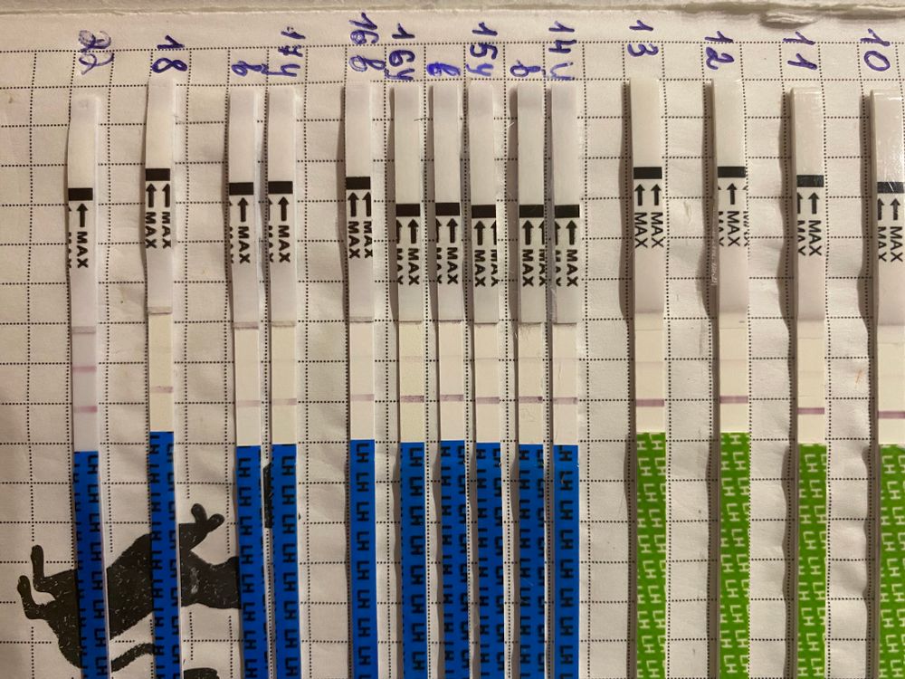 Где то🤷♀️ У меня такая же ерунда с этими тестами... ничего не выходит и я плюнула на это все. Решила, что хватит делать выручку аптекам! По ощущениям определяю (секса в эти дни хочется очень), слизистые выделения и грудь побаливает, упругая. А тесты выдавали так как и у вас, но овуляция вообще оказалась на 7-9 день цикла, на УЗИ сказали))) а я тестила как ненормальная заглядывала бегала, не появилась ли полоска вторая как тестовая...🤦🏻♀️