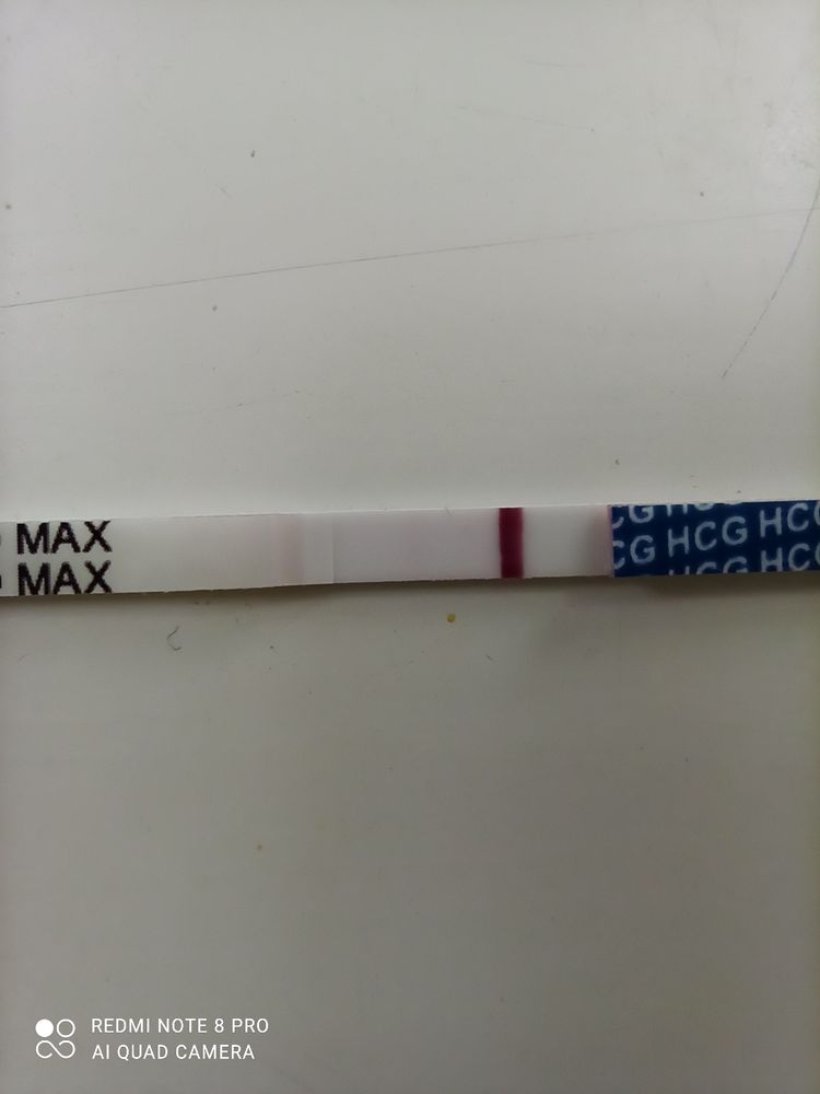 Непонятно,полоска не розовая,на беременную не похожа,но может быть ещё рано, вот мой фрау на 9 дпо и первый привет