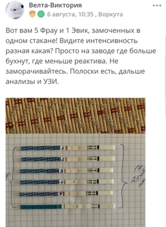 Потом нашла фото девушки, которая показала 5 тестов фрау и 1 эвик, замоченных в одном стакане, а там такие полосочки разные!! И я успокоилась. Главное, что полосочки есть!