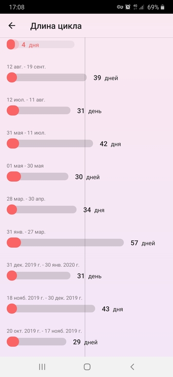 У вас из месяца в месяц прослеживается закономерность 30/40 дней. Плюс-минус, конечно. Но она есть! У меня так же, только 25/29 дней.