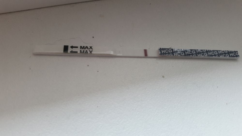 На фото тест отрицательный. Но само качество фото и расположение теста, сильно затрудняют рассмотреть что-то. Скорее всего, Ваши М начинаются вот так, с мазни.