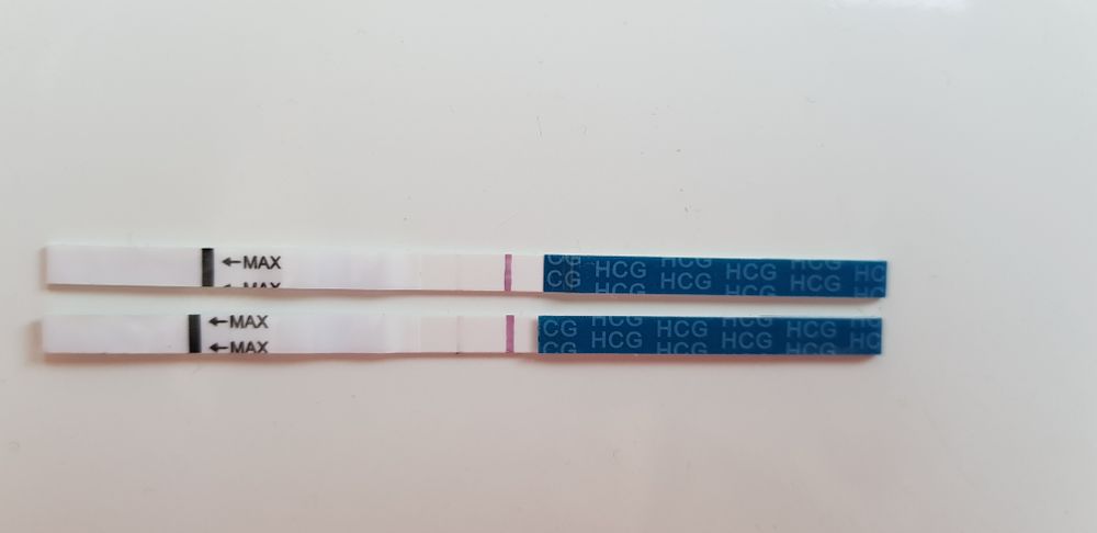 ну а это уже высохшие, верхний вчера,нижний сегодня(14дпо). Оба эви(чувств.20ммоль)🙏🥰