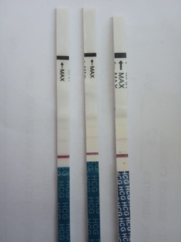 Идите кровь сдать, электронный может пока на концентрацию ХГЧ не среагировать, а могут и полоски на какую кисту намекать... Кровь покажет точно. Но полосочки я у вас вижу, и на реагент не похожи.