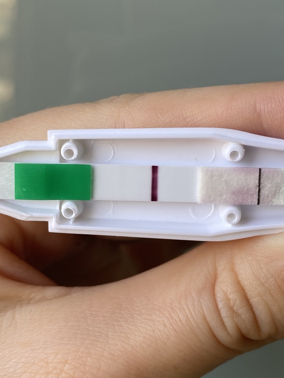 Я и там и там вижу полоску. Может мало времени прошло для видимой динамики. Просто если реагент, то на двух сразу - странно. Попробуйте может другой фирмы тест сделать.