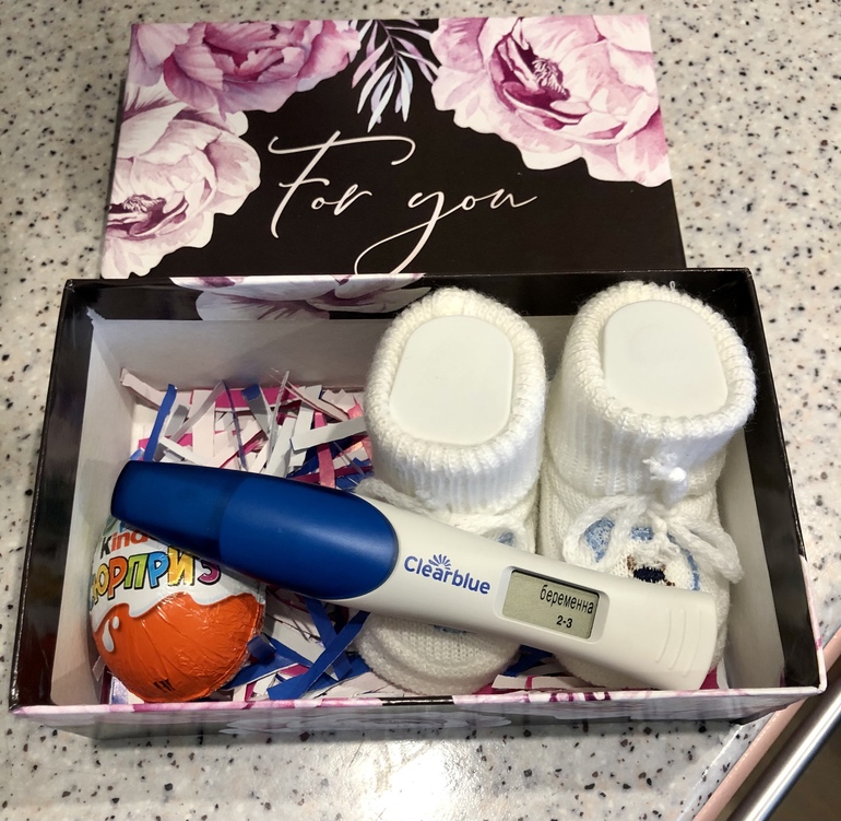 Я быстро сообразила коробочку,не стала ждать результата хгч,в обед муж заехал покушать и я сказала ему открыть коробку. Он увидел и сказал: «Я говорил,что будет все хорошо,а ты переживала!»☺️