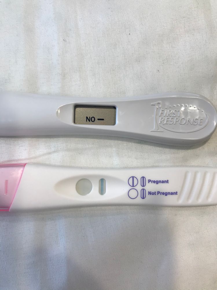 У электронного может чувствительность ниже. Мне эви показал бледную полоску, а электр был -. Через пару дней и он показал.