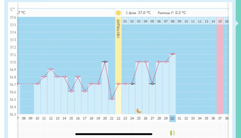 Ничего себе, как ярко) похоже, у вас имплантация была на 5 ДПО, судя по графику