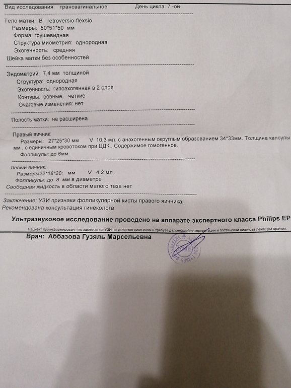 ФолликулометрияПервый день последней м был 24.09., 30.09 ходила на узи заключение фолекулярная киста