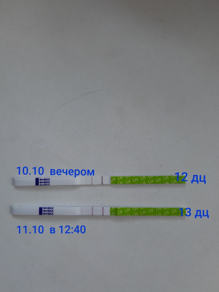 Овуляция( тесты на овуляцию)Всем привет! Вчера и сегодня в том месте немного влажно и беловатые выделения, прошлый цикл был 30 дней, до этого 25, поэтому я не знаю когда примерно ждать овуляцию. На фото тесты вчера вечером и сегодня до обеда. Сегодня полоска ярче, чем вчера, но не жирная как первая полоска. Стоит ли и завтра делать тест?