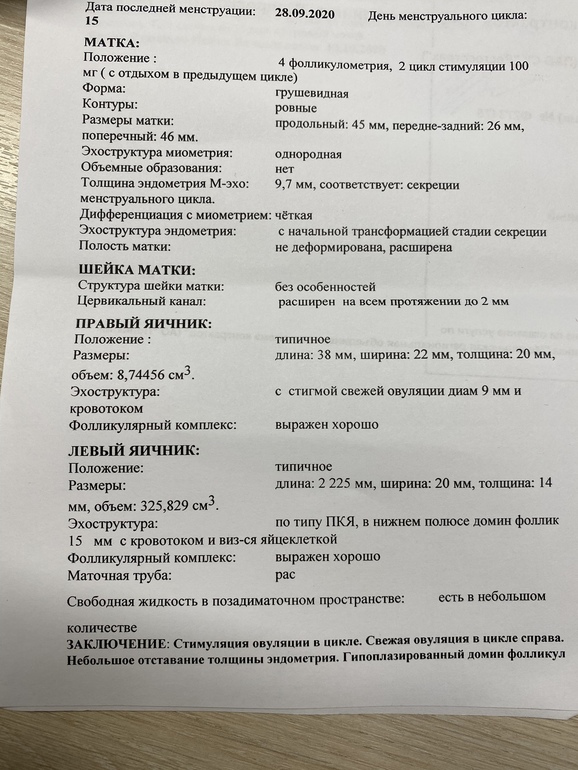 Сегодня 15 дц и 3 стимуляция, 3 ДПУ, ходила на контрольное УЗИ, по узи подтвердили овуляция (примерно вчера была, но я ничего не чувствовала и выделений никаких не было).