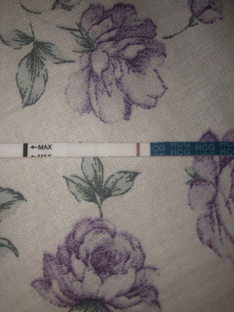 С такими тестами важна динамика,если к вечеру полоска не пропадёт ,а завтра утром станет чуть виднее то оно)