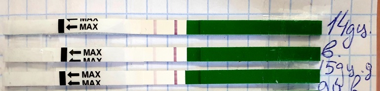 Овуляция( тесты на овуляцию)Я первый раз взяла Фрау и не понимаю,поймала я пик,или нет? Кто не первый раз с Фрау,подскажите,на 20й дц можно считать за пик,или нет? Самый нижний сделан только что