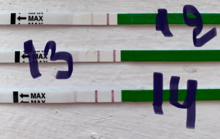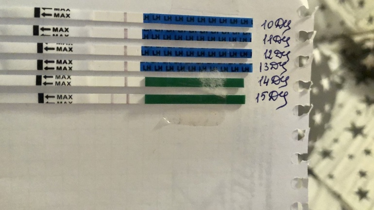 Да жирненько, а на следующий день уже все. У меня много эстрогенов и как следствие большой выплеск ЛГ. Не у всех женщин происходит всплеск, порой достаточно и небольшая концентрация ЛГ для того чтобы фолликул лопнул. Главное это динамика и выбирать самый яркий тест.