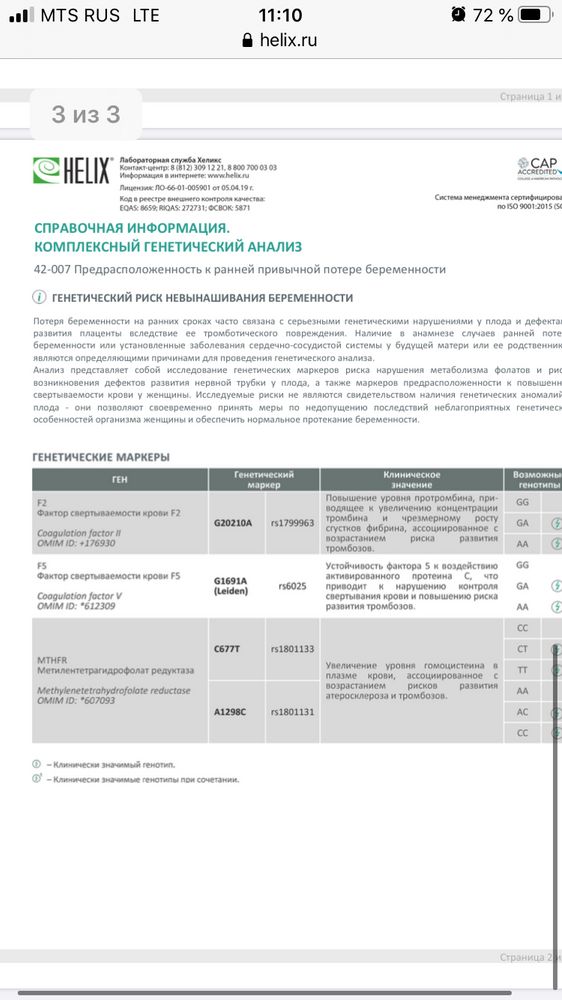 Называетс полиморфизм генов. Он есть гемостаз это очень опасные F1-F5 и фолатный цикл, вы можете даже сдать гомоцистеин если он повышен то поломки этого цикла точно есть. Все это может быть причиной и не только. У меня в дневнике ссылка на Инстаграм там есть список анализов. Обязательно нужен анализ на афс. Удачи вам