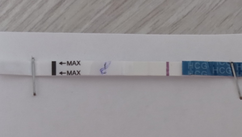 Простите, но он пустой. Немного растекся реагент наискось( Я как не обрабатывала - он чист🤷♀️ Есть белое место под полоску.