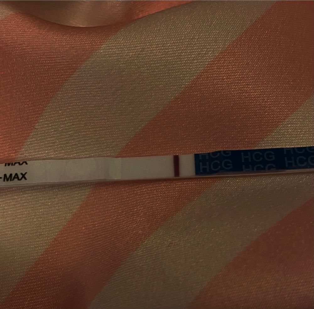 Мне что-то глаз цепляет, но может и просто место нанесения реагента.. Знаете когда О была? Если нет, то может была позже обычного, и розовые выделения могли быть имплантацией.