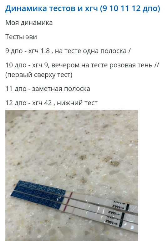 Нет это не мои тесты,эта девочка родила уже,она словила имплантацию по хгч,я просто сохранила себе как пример) хотя в прошлую беременность у меня на 12 дпо как и у нее было хгч -42 и западение бт на 9 дпо