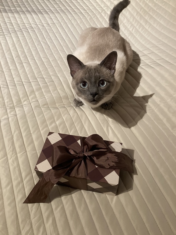 Я как раз приехала из клиники и раскладывая продукты, которые купила по дороге, сказала, что ему что-то тоже купила и сунула коробку в руки. 😁