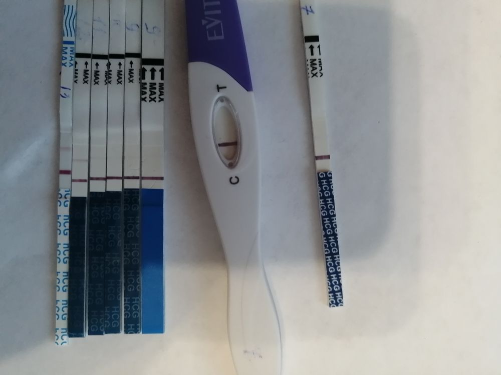 Сегодня первый день задержки. Делаю тесты, но полоска не ярчает. Все тесты сделаны утром, после пробуждения сразу. Кроме тех, где в один день два теста - там утрешний и вечерний. С почками вроде никогда проблем не было. Точную дату О не знаю, отсчитала примерно как ставит программа. Как думаете - может при таком раскладе быть нормальная беременность? Есть ещё шансы на успех? Или все плохо? Так хочется надеяться, но умом понимаю - ничего хорошего ((( все верхние тесты - Эвики, нижний - фрау.