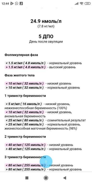 Девочки, подскажите, может было у кого так. Сдала прогестерон на 5 ДПО, пришел результат- 24,9нмоль/л. Дюфастон не пью. Калькулятор прогестерона пишет ,что низкий.Не знаю как быть