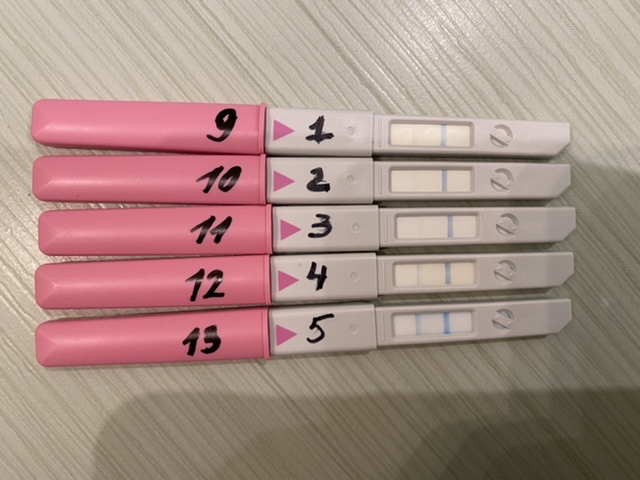 Я тоже такими тестами пользуюсь, у них редко когда бывает, чтобы полоска была хотя бы такая же как контрольная (если вообще такое бывает, я что-то не помню 🤔). И вам правильно подсказали, что начиная с сегодня и ещё 3-4 дня нужно стараться)