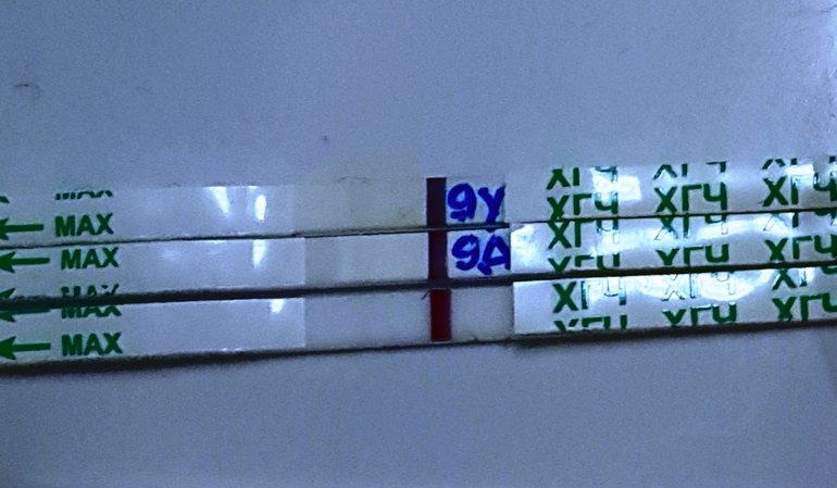 Мне кстати вера понравилась. Китайцы у меня все выдавали тонкую полосу, а на вере она широкая и равномерно окрашена, хоть и супер бледная (но это потому что хгч после укола мал).