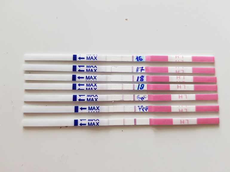 А вот набор тестов на овуляцию. До, перед о (с цифрой 19, это на 19дц) и последние три это 6, 7 и 8 дпо. Тестов на б не было, а этих много 🤪🤪🤪😂😂😂😂