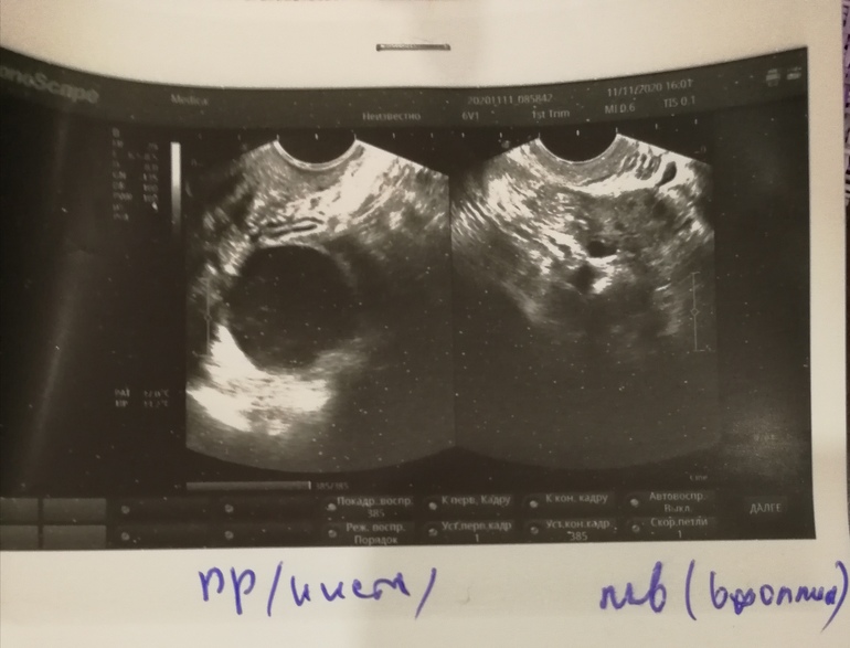 Да бля. Хорошо что сходила. Киста справа. Там и труба непроходима. Не поняла какая. Но по фото - фолликулярная. Никакой О слева и близко не было, а я ее так "чувствовала" 😂😂😂Зато эндик 10 мм! Восстановился, слава яйцам. Жду М.