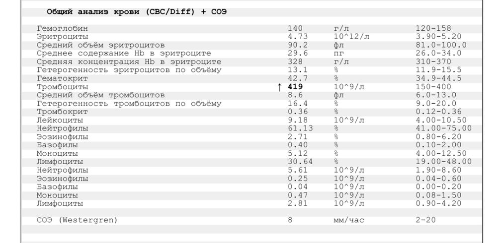 В моем случае высокие тромбоциты были следствием обезвоживания. Очень мало пила чистой обычной воды. Надо 30-40 мл на кг веса в сутки.