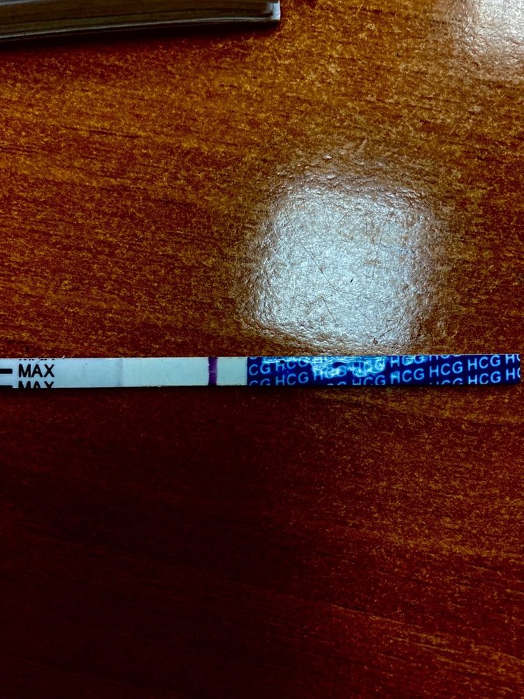 Ну либо месячные разгоняется, либо, если это имплантационное кровотечение, то полоску ещё не покажет. Тест пока пуст.