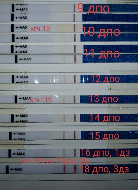 На 9 дпо вечером тест был кристально чистым. На 10 дпо очень слабенькая полосочка была. К вечеру уже стала ярче. На 11 дпо уже явная вторая. И с каждым днем ярче и ярче.