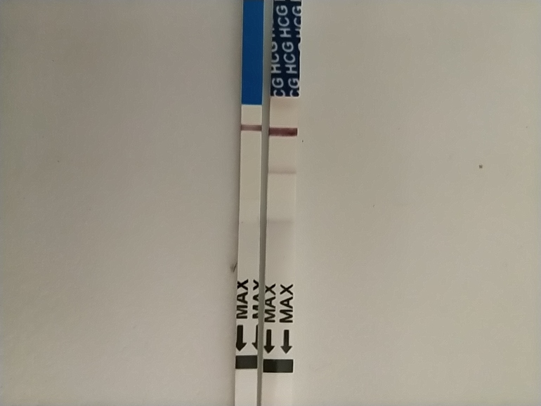 На 8 ДПО розовая слабая, на 9 ДПО утром уже хорошая розовая полосочка. Приглядываться не нужно было вообще. ХГЧ на 9 ДПО был 12