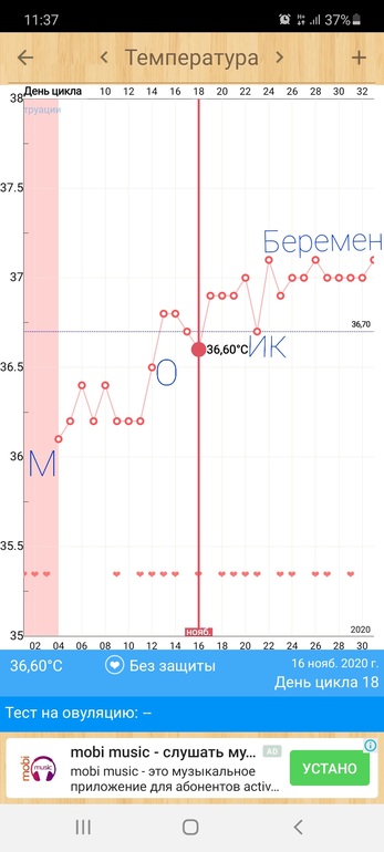 овуляция была на 18-19 дц. Характерные выделения как ЯБ, тянуло живот как на месячные, набухла грудь, все по стандарту. За 2 дня до овуляции и через 1,5 дня после были ПА. После этого выделения полужидкие не прекратились, шли ещё дней 6-7, хотя всегда после овуляции они перестают идти. Сейчас 26 дц. Из симптомов только дикая сонливость, нахожусь в какой-то прострации, к обеду уже рубит спать, а к вечеру я вообще как зомби и ничего не соображаю, хотя спать ложусь в 11 и встаю в 7:30, должна высыпаться. За БТ не следила, но сегодня решила измерить - 36,8. Недели 2 назад тоже мерила ради интереса, было 36.5. Получается разница в 0,3. Месячные через неделю. Как думаете, возможна беременность?