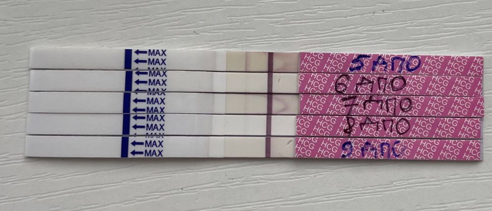 Как и в прошлую беременность , решила отслеживать выход укола . Вот результат .. сегодня 9дпо или 10дпу. В прошлую беременность тесты все время показывали две полоски . Никаких признаков нет :( тесты 10 чувствительность . Грустно :(