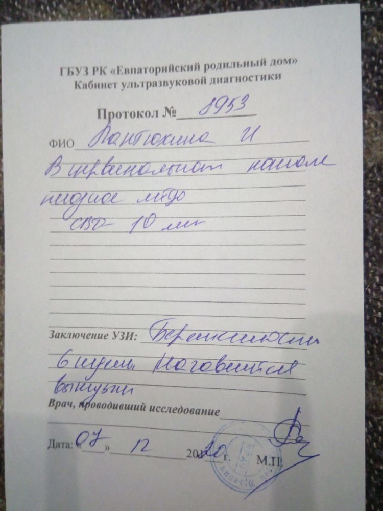 Замершая беременностьВсе девченки закончилась моя долгожданная беременность во второй раз.... Опишу сегодняшний день. Токсикоз второй день как пропал, кровотечение со вторника началось, сегодня в надежде приехала на дневной стационар в надежде сново уколоться транексамом чтоб остановить кровотечение и верила в лучшее, врачу не понравилось что с меня столько дней льет, отправила на кресло чтоб посмотреть шейку матки, посмотрела и говорит что шм уже открыта и выкидыша не избежать, я отказывалась в это верить она говорит не веришь мне дала направление на узи, иду и молюсь что может быть она ошиблась и с нашим малышом все хорошо, веркдит узиста меня добил окончательно, "начавшийся выкидыш" пя уже в шм, сама матка чистая успела очистится за это время как кровило, со слезами на глазах отдаю заключение узи врачу, а она мне в ответ ложись на чистку, я в отказную так как матка то чистая зачем ее шкрябать, а с пя я сама разберусь, дала мне на выкидыш сутки, если не будет то чистку, согласилась и ушла, купила баночку для анализов пошла в туалет палец во влагалище нащупала шм она была открыта и чувствовала пя в нем, давай тужится и пальцем ловить что должно выйти чтоб собрать в баночку, за 30 минут вытужила и повезла на цитологию в роддом, моральное состояние убитое в пух и прах, захожу к врачу отдать баночку, она видит что я в убитом состоянии начинает успокаивать, что говорила не помню мысли прокручивались как я ждала эту беременность, высчитывала дпо, первые признаки, первый призрак на тесте и тут пришла в себя врач сует мне желтую капсулу антибиотик и окситоцин, я спрашую мне можно домой пойти к детям? Разрешили я как робот разворачиваюсь и выхожу из роддома не взяв лекарства, нехочу больше глотать жменями лекарства, разбитость в душе, как вышла не помню, мысли о динамики счастливых полосок не отпускают, как маме сказала что я снова стану мамой, села на остановку и ждала трамвай, слезы ручьем, как теперь жить? За какие грехи мне два выкидыша подряд? Села в трамвай и мысли выйти возле леса закопаться и сдохнуть, утопиться в море, но прихожу в себя с мыслью что у меня есть двое деток и им я сейчас нужней, захожу в магазин купить хлеб и продавщица моя подруга спрашивает: Что ты сегодня такая нарядная? (она привыкла что я постоянно в домашней одежде). Я ей в ответ: Выкидыш в роддом на цитологию отвозила, она и побледнела, взяла хлеб и пиво расплатилась и ушла, пришла домой муж успокаивает но у меня состояние что я уже умерла, попросила его не трогать меня так как от его сочувствия еще больше реву что не могу выносить нашего третьего долгожданого ребенка, уехал, обняла дочу и ревела пока доченька не уснула. Пила витамины с мая, проходила скрытые инфекции все чисто было, вредных привычек с 2018г не было, стресов тоже и в итоге ...... Сказали пол года небеременеть и как собиремся только через генетика, сейчас девченки ничего не хочу я уже боюсь беременеть, страх и низкая самооценка после произошедшего.... Это узи которые делала когда лежала на сохранении, цитология малыша будет готово через 17 дней.