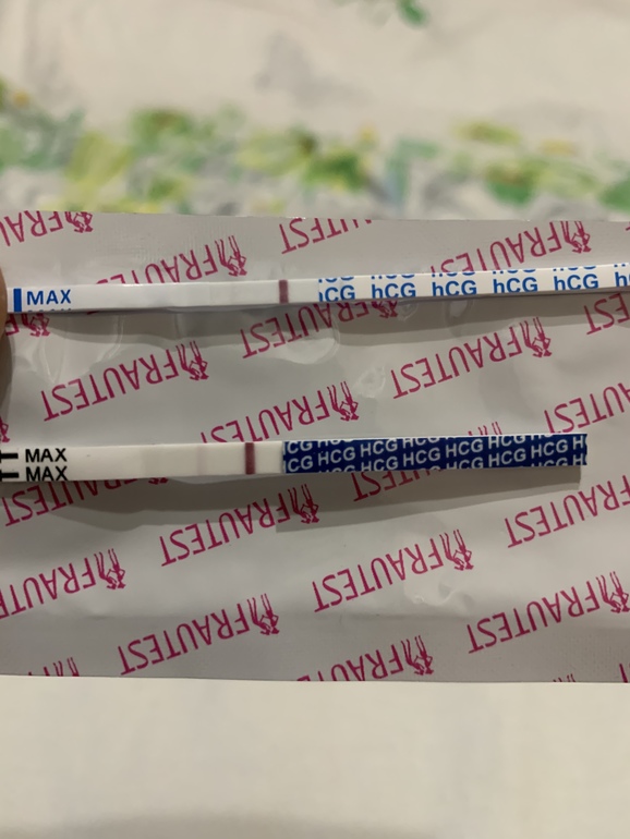 Спасибо. Пока рано ещё поздравлять. Но хочется верить, что все хорошо будет. До М ещё неделя. Вот сегодняшние тесты. Верхний до обеда сделала, Нижний сейчас ( фрау), перед этим много воды пила. Только бы маточная Б была🙏🙏🙏