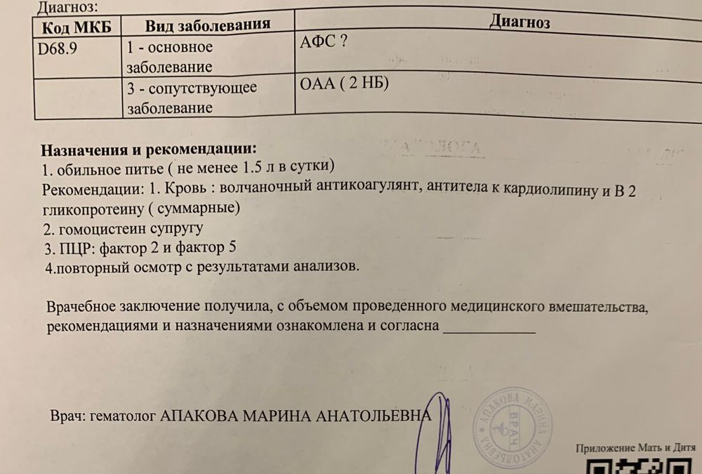 Женевьева, я совсем не думала что вы спорите. Просто есть врачи которые считают что важны только фактор 2 или 5. Я дала ссылку на то что паи тоже не без обидный. С этими анализами надо к гематологу. Хотя гинеколог тоже должен разбираться. И конечно же страховать себя в будущем чтоб не было пэ. Поверьте я тоже долго варилась в этом и мне многие писали что эти мутации фигня. И итог печальный. Лучше знать и вплоть самой начать терапию чем оплакивать зб. Моя вера врачам не привела ни к чему. Тут кому как повезет мутации могут не активироваться во время беременности,а могут и активироваться на любом сроке. Я например родила ребенка первого без особых проблем и препаратов.