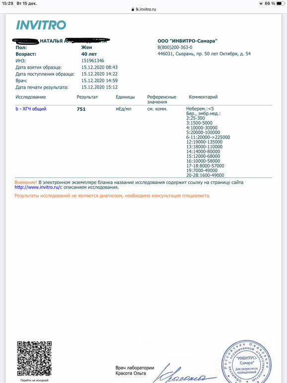 Пришёл результат ХГЧ.