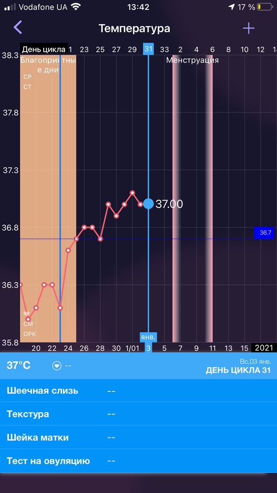 График прикрепляю) Ранее за 3-4 дня до М температура опускалась до 36.4 где-то) На 14 ДПО сдаю ХГЧ 🤞🏻если не придут М. Тесты не хочу делать. Очень боюсь расстроиться. Очень надеюсь на этот цикл. По графику верю, что имплантация была на 5 ДПО. О подтвердилась по узи на 23 д.ц и по БТ