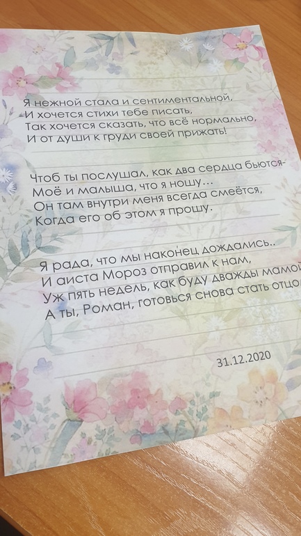 Муж, конечно не понял, что к чему, потом я дала ему прочесть стихотворение по которому конечно он впе понял)) потом уже снимок узи.