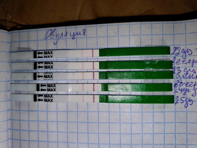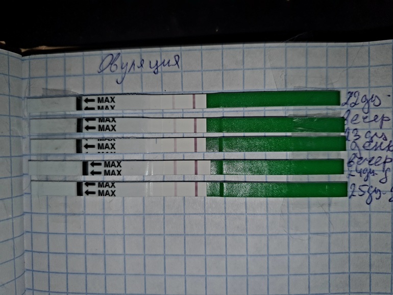 Овуляция( тесты на овуляцию)Можно ли считать второй снизу тест положит,или ещё нет? Купила ещё одну упаковку,продолжу ещё делать