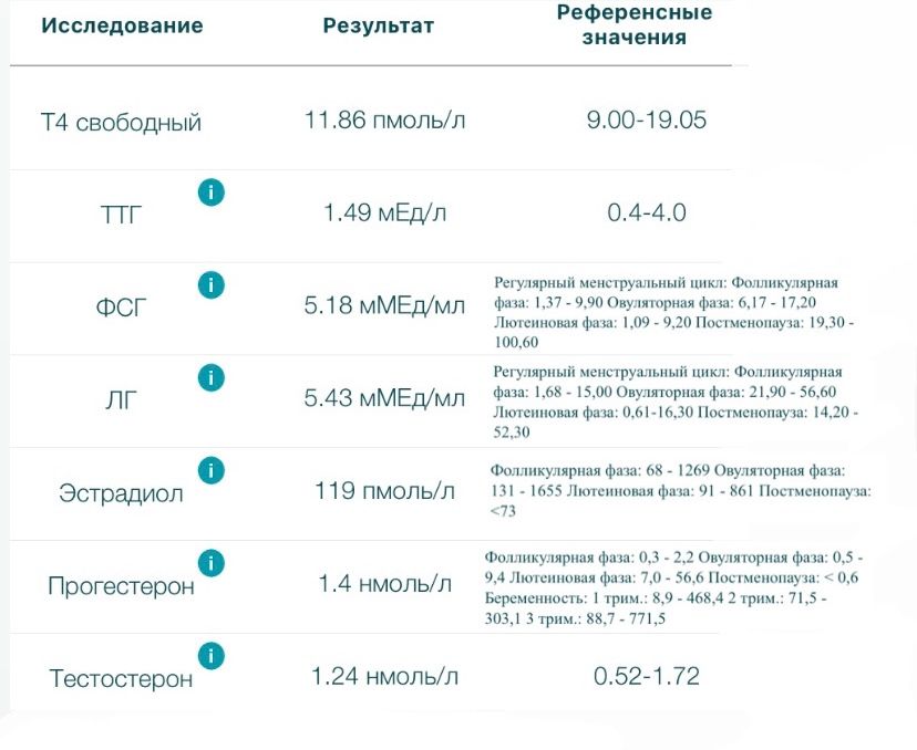 Анна в Зачатие 5 лет Гормоны Анализы Всем привет! Подскажите, кто разбирается, что можно сказать? Смотрю по нормам, все в пределах. К врачу на след.неделе. 3 дц. Мес регулярные. Посмотрите еще 20 записей на эту тему Отменить Ответить Елена Я не специалист, но кажется, что в фолликулярную фазу ФСГ должен быть выше, чем ЛГ 08.01.2021 Ответить Нариша Нумеролог Вполне хорошие, не хватает пролактина 08.01.2021 Ответить Катя Отличные анализы, прогестерон тут только лишний, его сдают 7 дпо, на 3дц он не информативен. 08.01.2021 Ответить Анна Катя, спасибо за ответ! Да, сейчас посмотрела, увидела, что сдала вместо Пролактина прогестерон🤦🏼♀️🤦🏼♀️ 08.01.2021 Ответить Катя Стану мамой в 2021❤️, а, ну пролактин да... 08.01.2021 Ответить Цикл и анализы повышенный тестостерон. как снизить? Чаты Беременных Выберите чат: Январята-2026 Февралята-2026 Мартята-2026 Апрелята-2026 Майчата-2026 Июнята-2026 Июлята-2026 Августята-2026