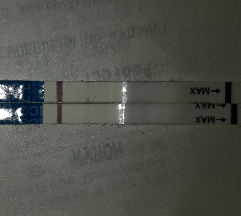 Вечерний после работы. Долго терпела, почти с обеда. А утрешний слелала на третий попис. Первый был в 5 утра. Второй в 7. И в 8. Я не знаю, что это, но мне нужно верить, что это реагенты. Боюсь другого результата. Я не планировала и не готова. Да, и не похожи, мне кажктся, на беремкнные подоски. Промто брала мама чек в новой упаковке и их совсех не знаю. Взяла, чтобы исключить бр. Поэтому подожду теперь месячных или задержки и буду решать что дальше. Мысленно я верю, что это реагенты. Поэтому особо не парюсь.