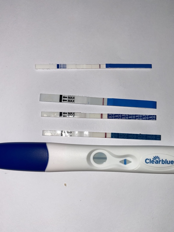 Тесты вруны (ложноположительные/ложноотрицательные)Не зря вчера не поверила фемитесту, сегодня все чисто. Фото вруна (самый верхний) и утренних отрицательных.