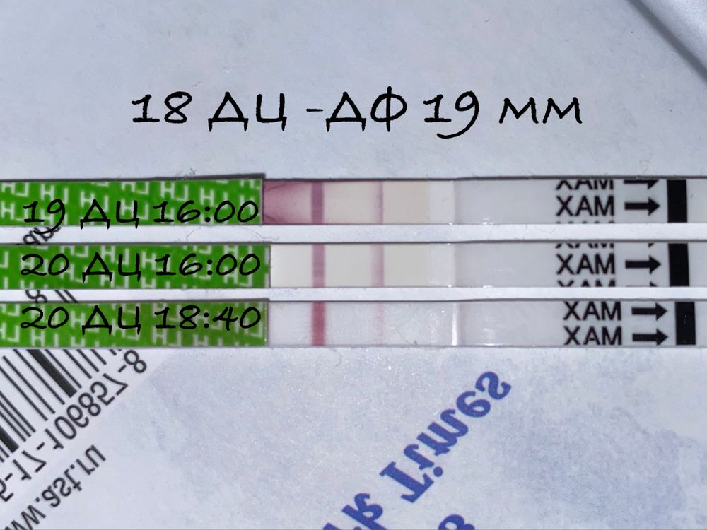 Моё личное мнение, у вас о могла быть и на 18 дц, дф размером 19 мм вполне мог и совулировать. Отсюда и угасающий гормон на тестах. Вы пропустили скорее всего её. Удачи 😊